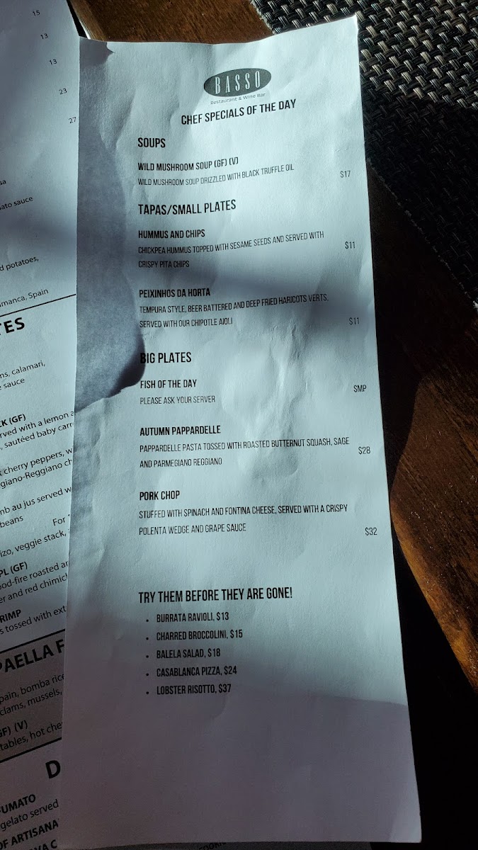 Basso Restaurant & Wine Bar Menu (2025 Update)